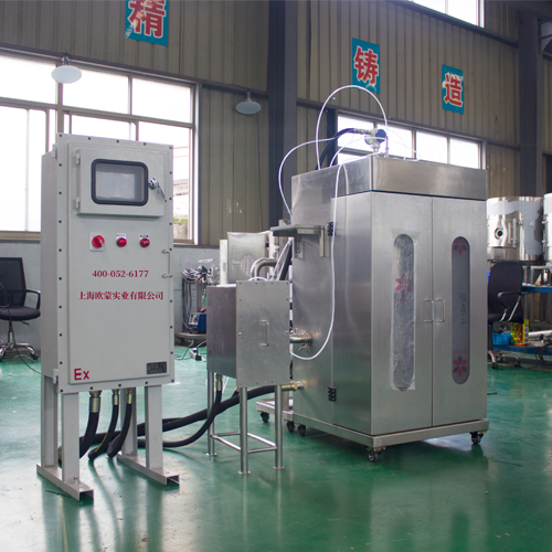 有機溶劑噴霧干燥機目前已經成熟應用于乙 醇,丙酮,己烷,氣油等有機溶劑制成的懸濁液,以惰性氣體(或氮氣)做為干燥介質的產品的閉路循環式噴霧干燥工藝。整個過程產品無氧化,介質可回收,惰性 氣體(或氮氣)可循環利用。為有機溶劑回收設計的閉式循環系統,系統防爆控制要求極高,系統自控性能極高,GMP要求苛刻。常用于精密陶瓷、醫藥品、電池材料、硬質合金(Wc.Fe)粉的噴霧干燥。