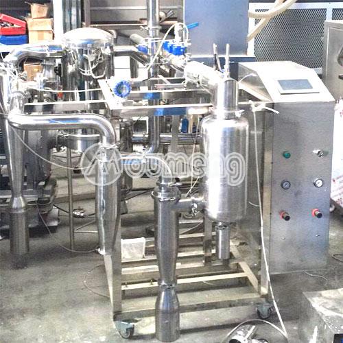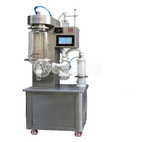 N2氮氣循環(huán)式噴霧干燥機系統(tǒng)采用密閉設計,主要應用于酒精類溶液,N2作為惰性氣體干燥使得設備運行更加安全。產(chǎn)品無氧化,品質(zhì)好,粉料松裝比重及平均粒徑一致性好,其流動性可滿足自動壓機連續(xù)化生產(chǎn),同時溶劑介質(zhì)可以在線回收。在規(guī)定的條件下溶劑蒸發(fā)能力2Kg/h(根據(jù)物料固體含量)。整套設備由供料系統(tǒng)、霧化器、電加熱器、干燥塔、旋風收塵器、冷凝塔、防爆裝置、在線氧氣檢測系統(tǒng)及電氣控制系統(tǒng)組成等。